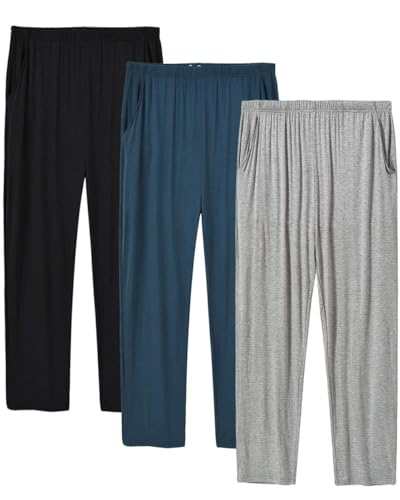 MoFiz Men's Lounge Pyjama Trousers Pants Modal Long Pyjamas Bottoms Loungewear Pajama Pants (Black,Blue, Grey) Size XL