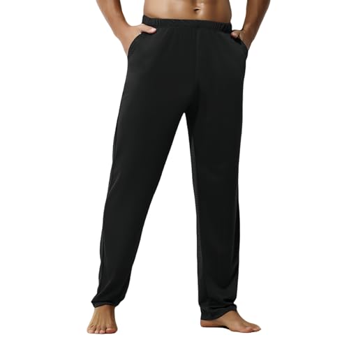Hybursky Mens Lounge Trousers Pjs Bottoms Breathable Pyjama Pants Nightwear Elastic Waisted Lounge Pants with Pockets PJs Solid Summer Loungewear(Black/3XL)