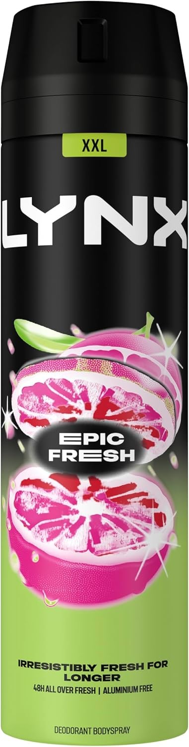 Lynx Epic Fresh Aerosol Body Spray Men's Deodorant Spray with a grapefruit & tr