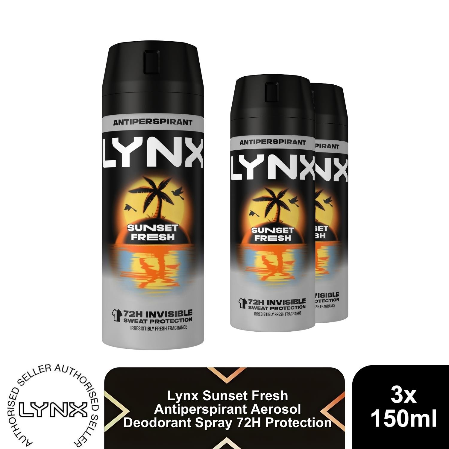 Lynx Sunset Fresh Men's Deodorant Spray Anti-Perspirant Aerosol 150ml, 3 Pack