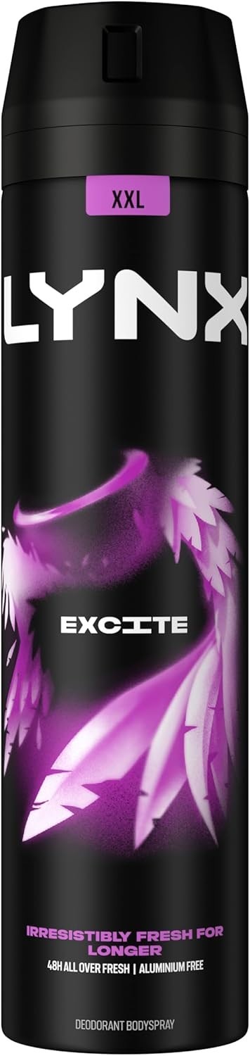 Lynx XL Excite Body Spray Deodorant for Men 200ml Pack of 3, 48H Odour Protection Bodyspray Aerosol, Long Lasting Masculine Fragrance, Lynx Deodorant Mens Everyday Freshness