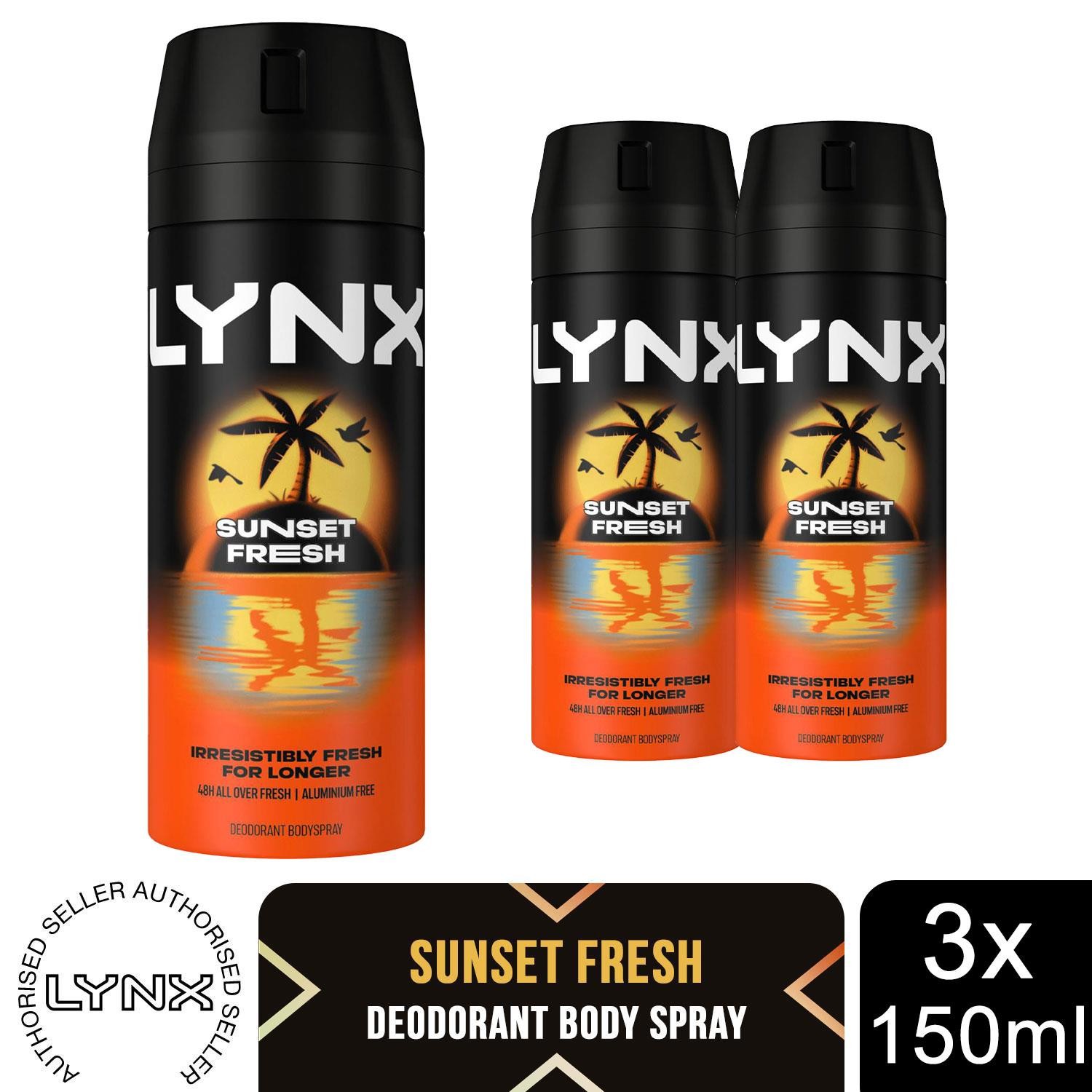 Lynx Sunset Fresh Men's Deodorant Body Spray 150ml, 3 Pack