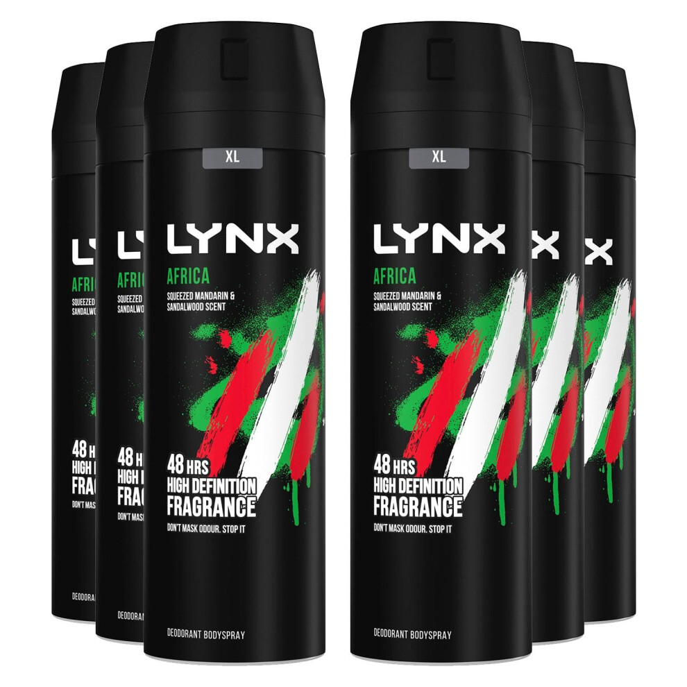 Lynx Africa Men's Fragrance, Aluminium Free Masculine Body Spray Deodorant, Fresh And Long Lasting Odour Protection, 6 Pack of 200