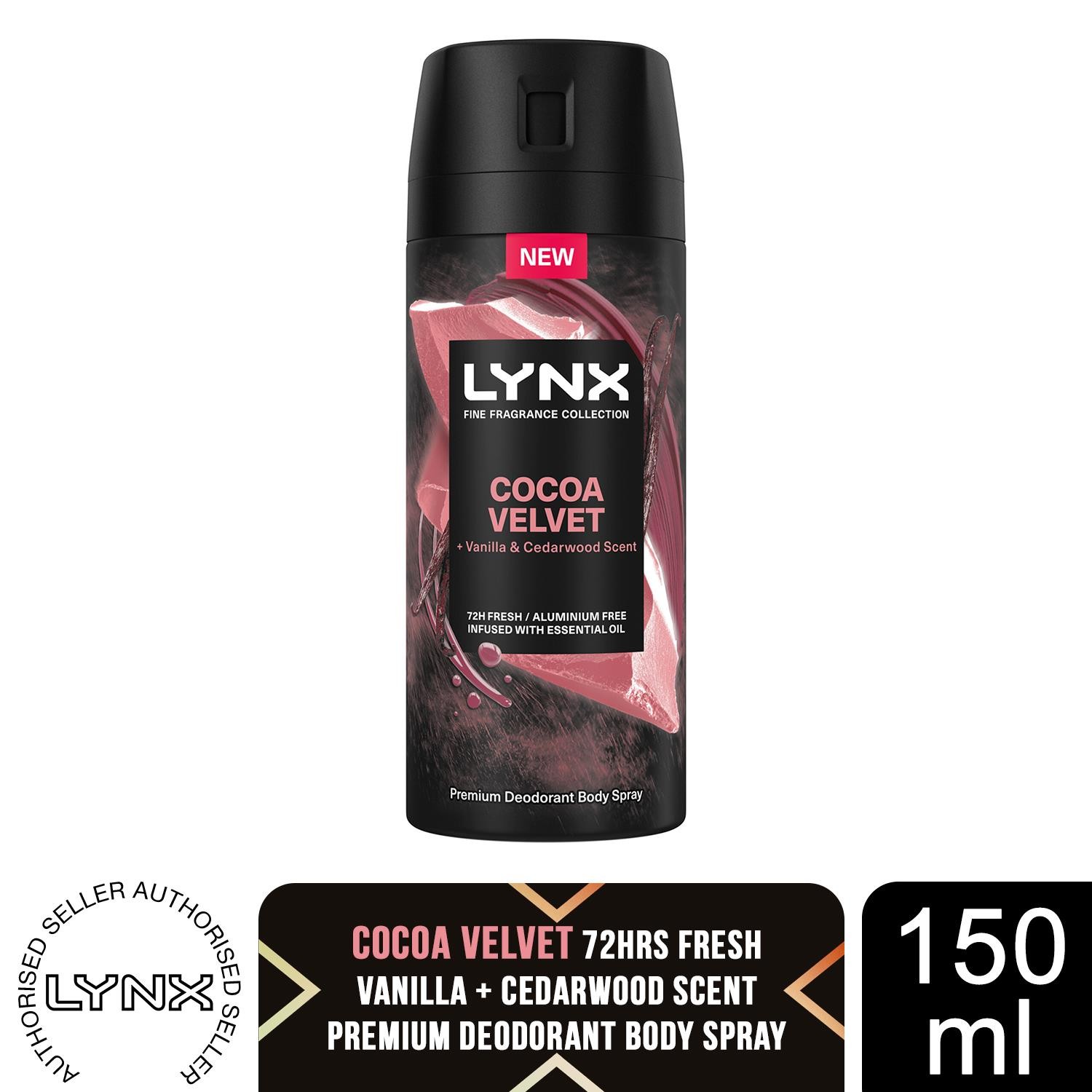 Lynx Men's Cocoa Velvet Deodorant Body Spray with 72Hrs of Freshness, 150ml