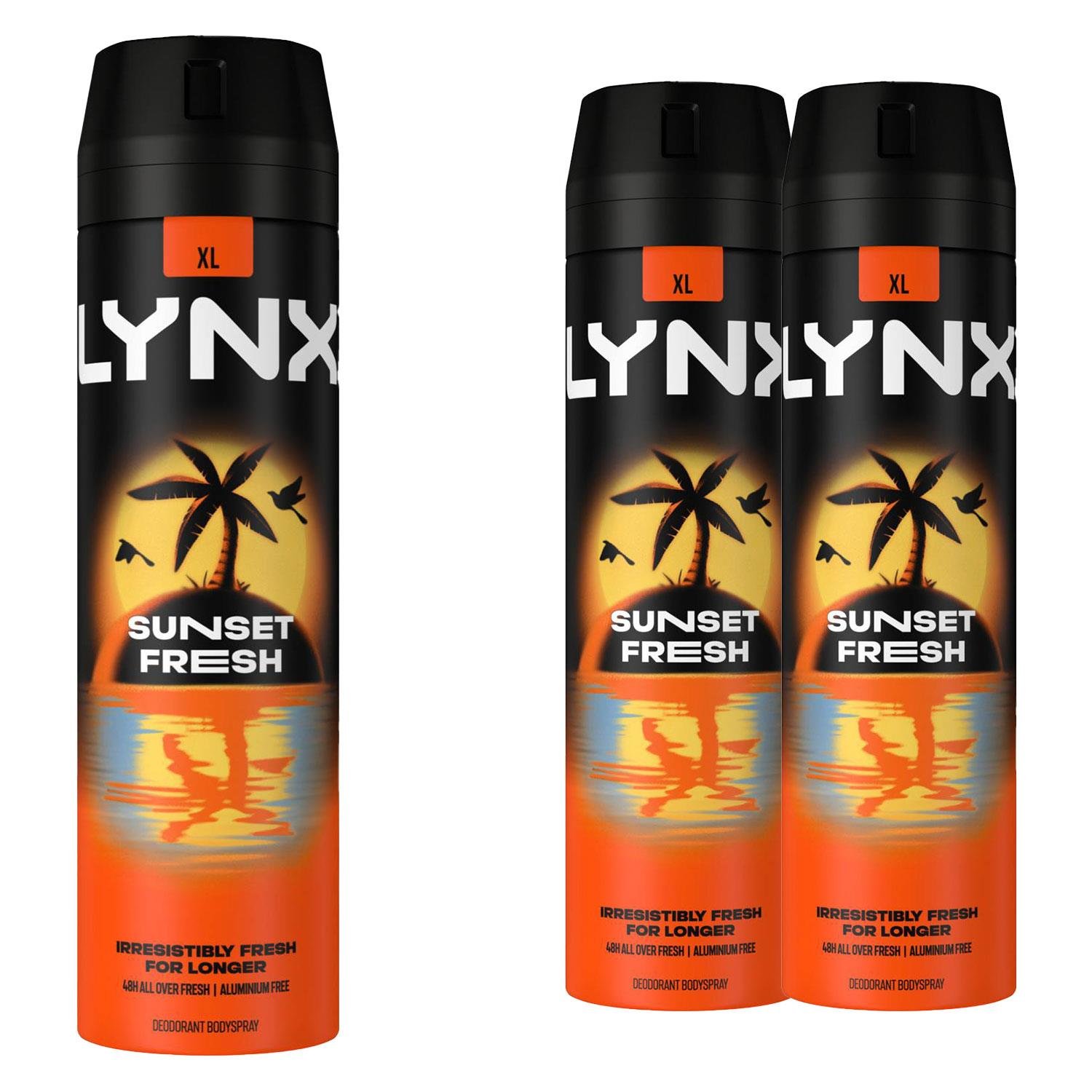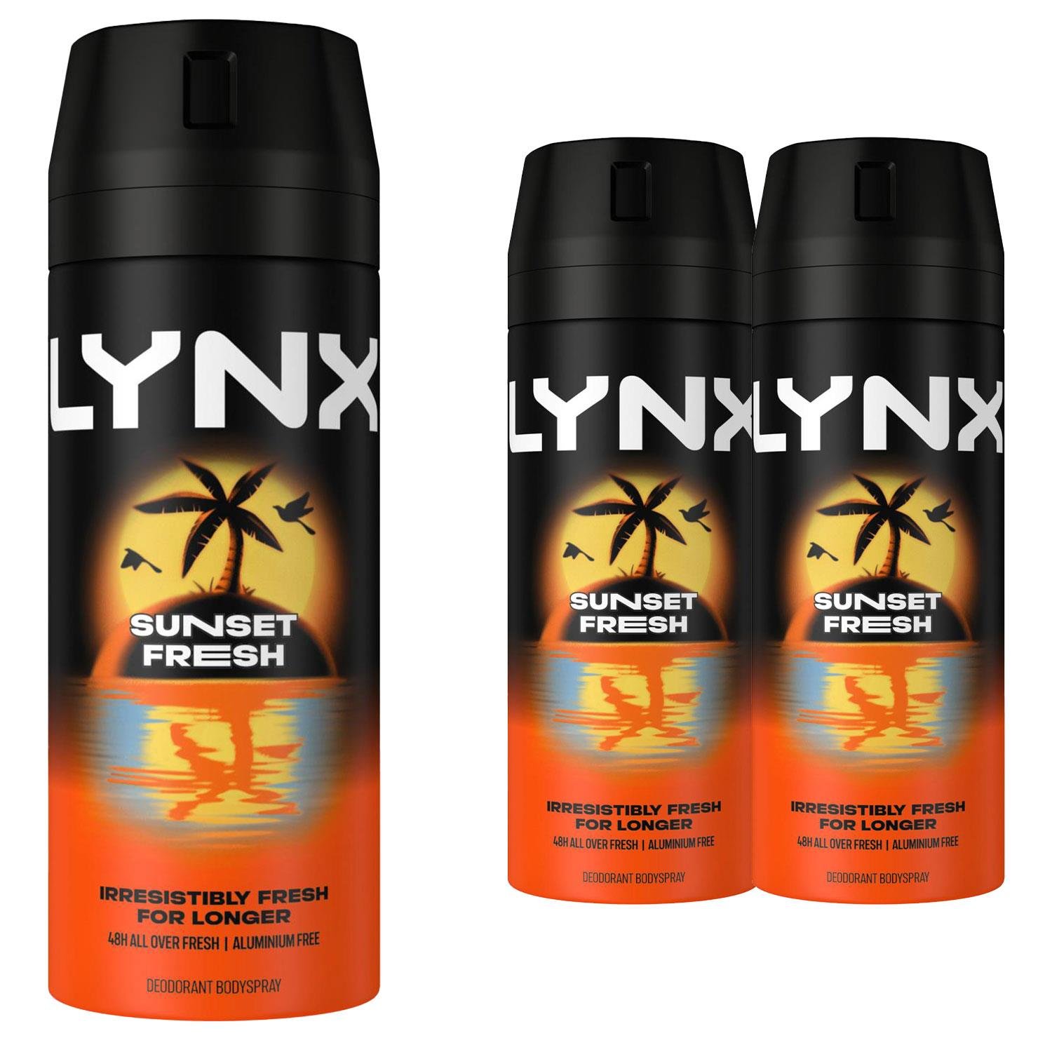 Lynx Sunset Fresh Mens Deodorant Body Spray 150ml, 3 Pack - One Size