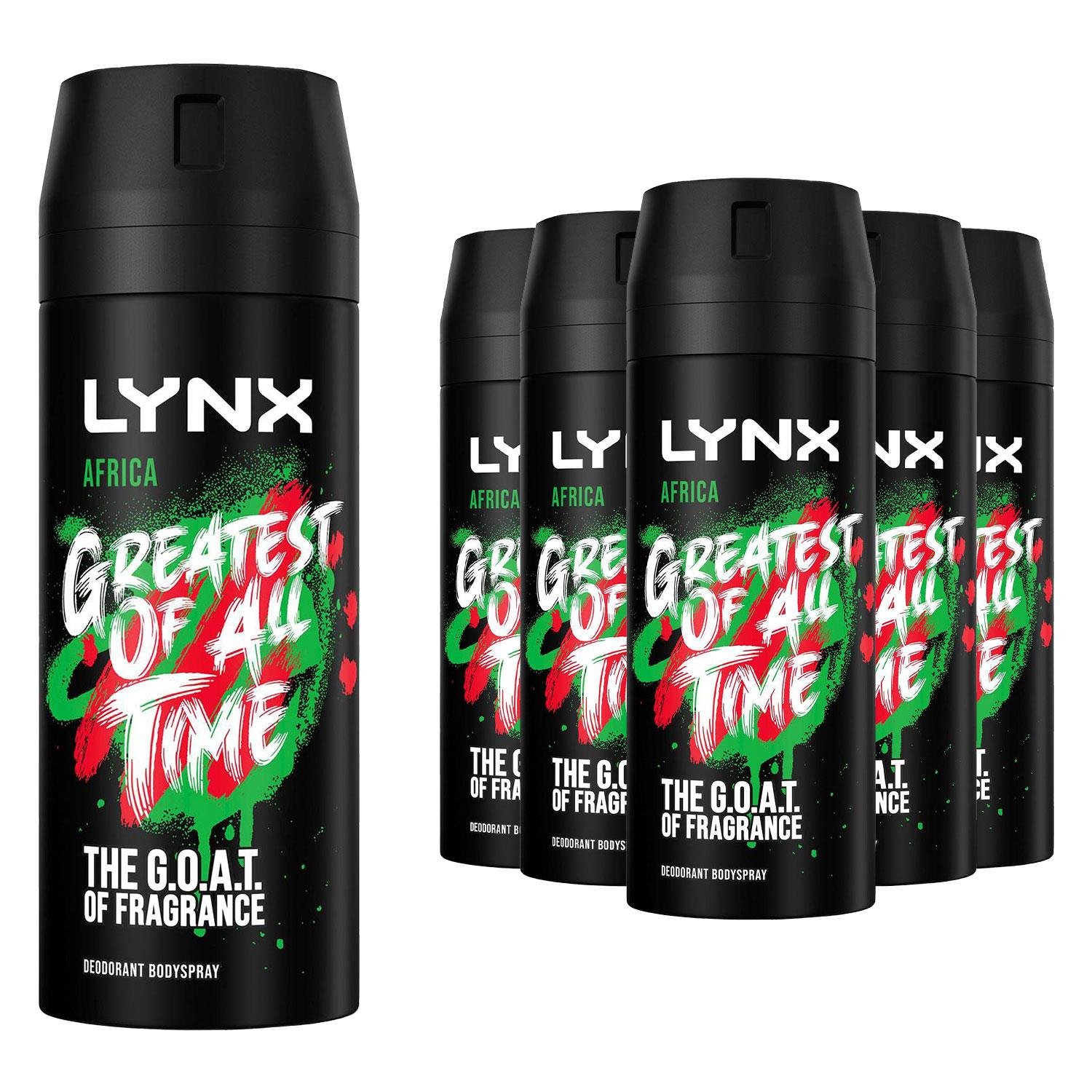 Lynx Africa Men's Fragrance, Aluminium Free Masculine Body Spray Deodorant, Fresh And Long Lasting Odour Protection, 6 Pack of 200ml