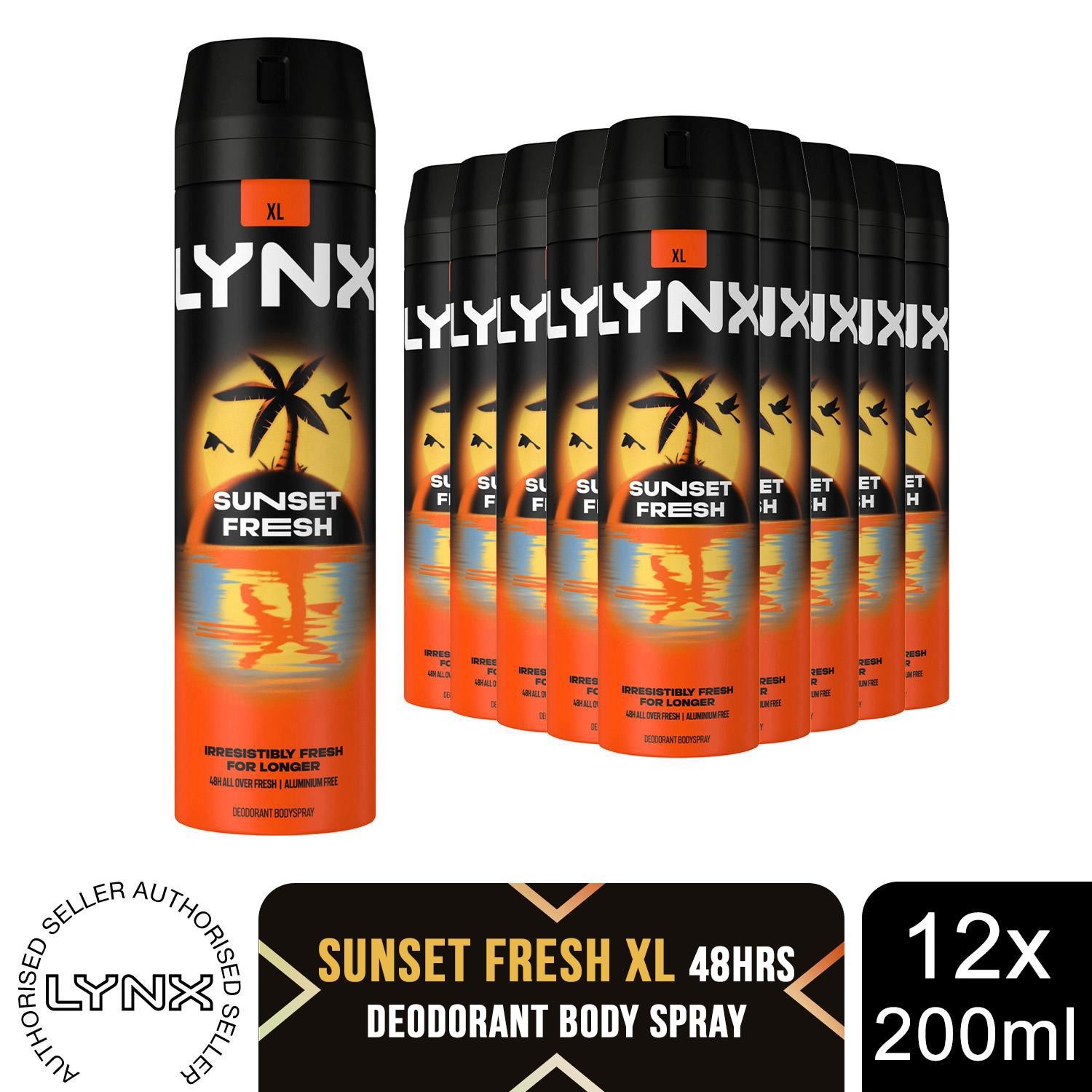 Lynx Sunset Fresh Men's Deodorant Body Spray 200ml, 12 Pack