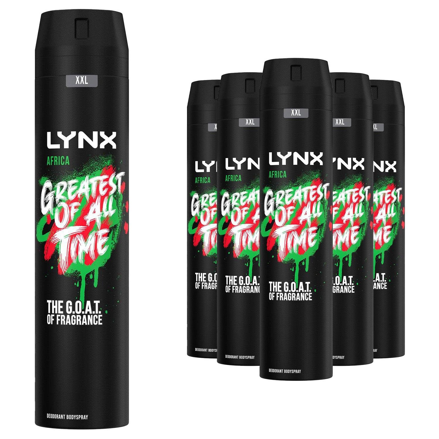 Lynx Mens XXL Africa 48-Hour High Definition Fragrance Body Spray Deodorant, 6x250ml - Size 250 ml