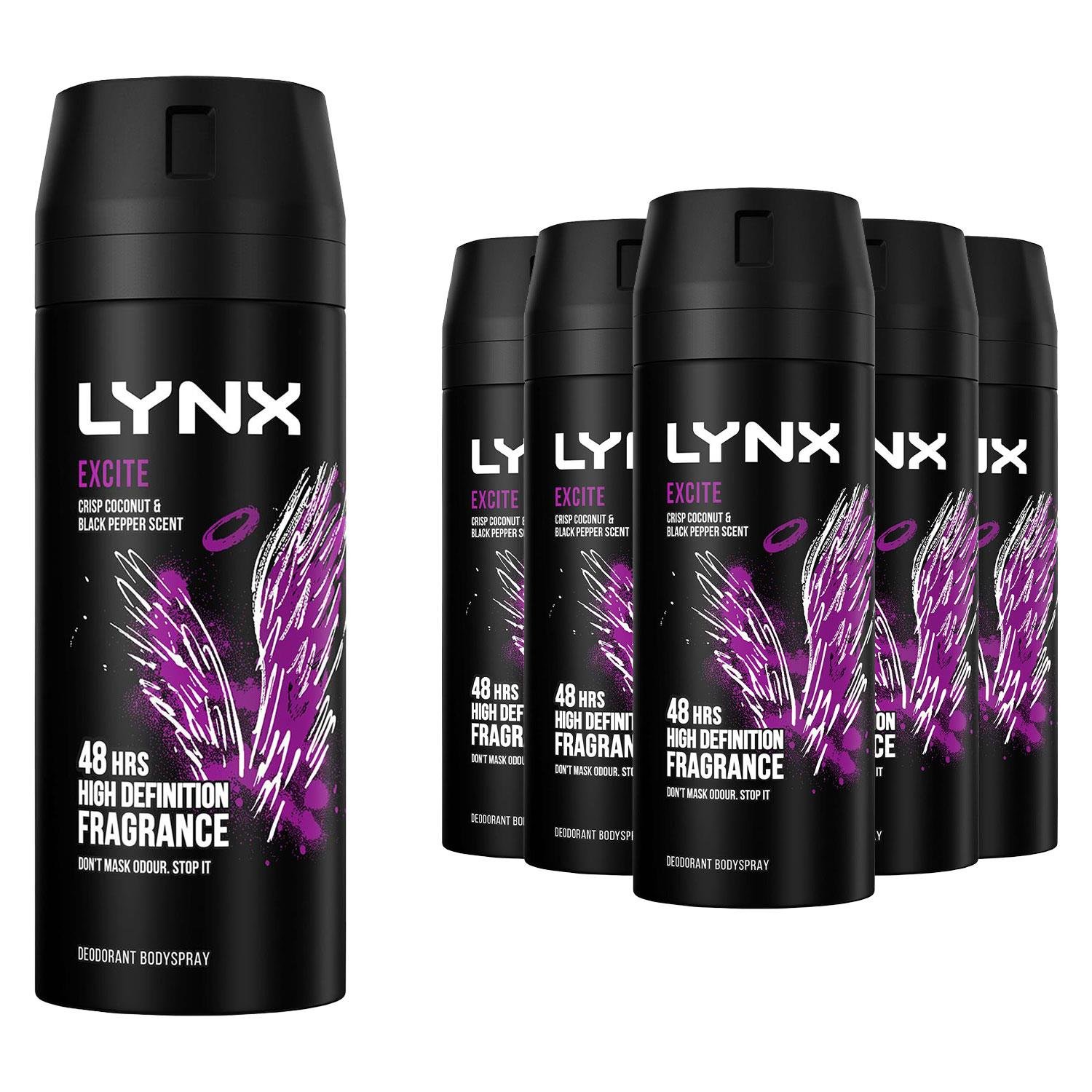 Lynx Mens Excite Body Spray Deodorant 48Hrs High Definition Fragrance 150ml, 18 Pack - Size 150 ml