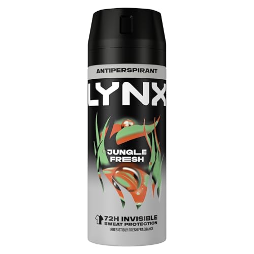 Lynx Jungle Fresh Anti-Perspirant Aerosol Men's Deodorant Spray with ProScent technology and a palm leaves & amber scent for 72 hours protection against odour and wetness 6x 150 ml