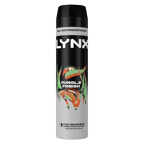 Lynx Jungle Fresh Anti-Perspirant Aerosol Men's Deodorant Spray with ProScent technology and a palm leaves & amber scent for 72 hours protection against odour and wetness 6x 250 ml