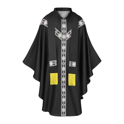 Générique Priest Costume | Catholic Church Priest Costume | Embroidered Clergy Dress | Mens Prayer Church Wedding Party Holiday Masquerade Stage Cosplay Sitting
