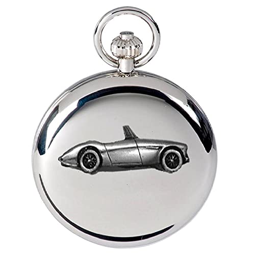 Classic car Healey 3000 Mk3 ref18 Pewter Effect Design on a Polished Silver case Men's Gift Quartz Pocket Watch fob