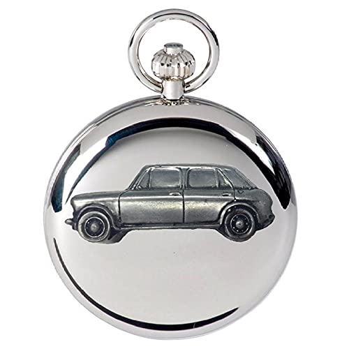 Classic British car Austin 1100 Mk 3 ref9 Pewter Effect Design on a Polished Silver case Men's Gift Quartz Pocket Watch fob