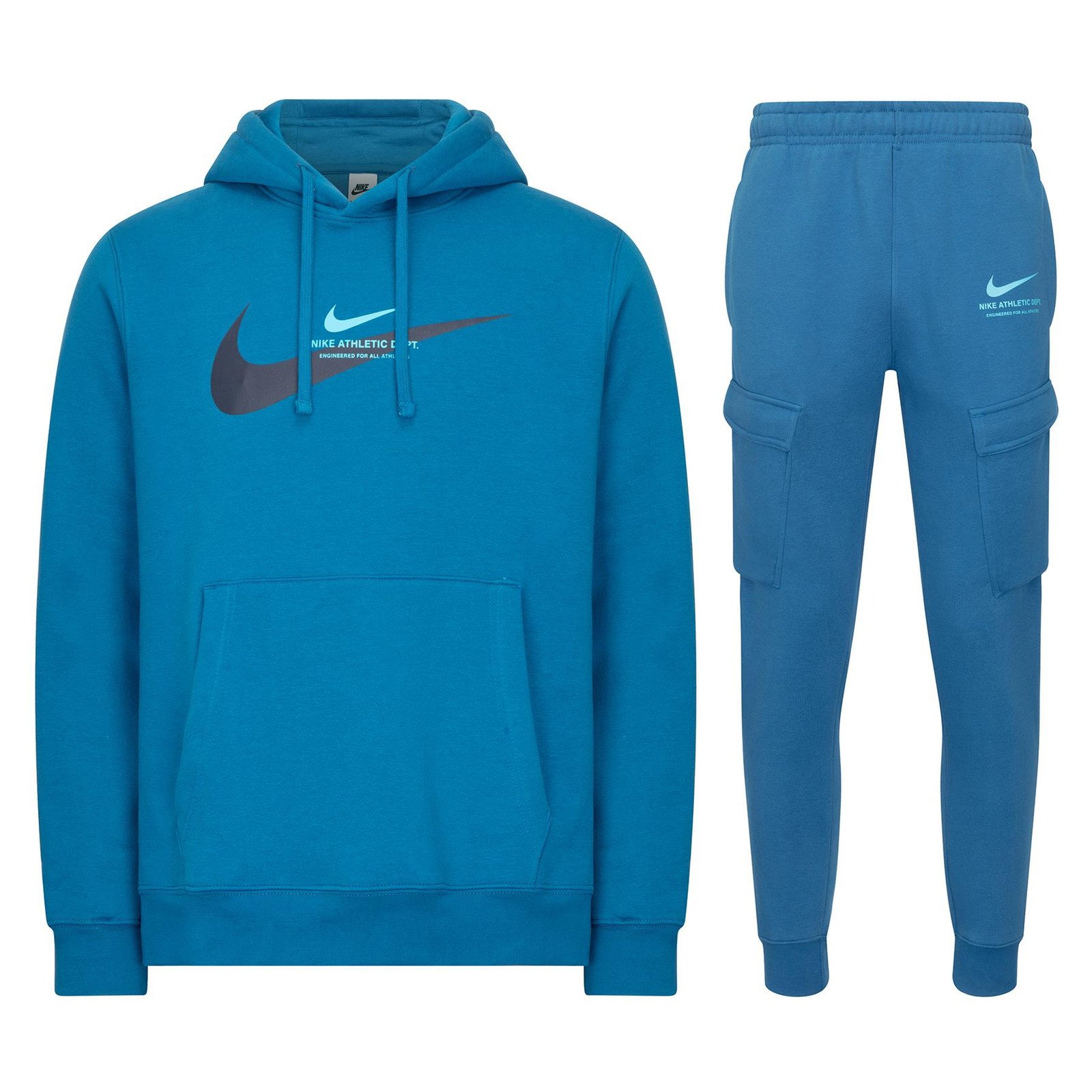 Nike Standard Issue Men's Fleece Tracksuit Set Blue - Hoodie and Cargo Joggers