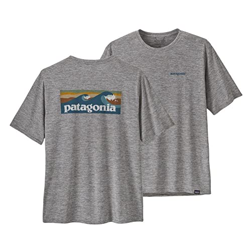Patagonia Men's M's Cap Cool Daily Graphic Shirt-Waters Tops, Boardshort Logo Abalone Blue: Feather Grey, S