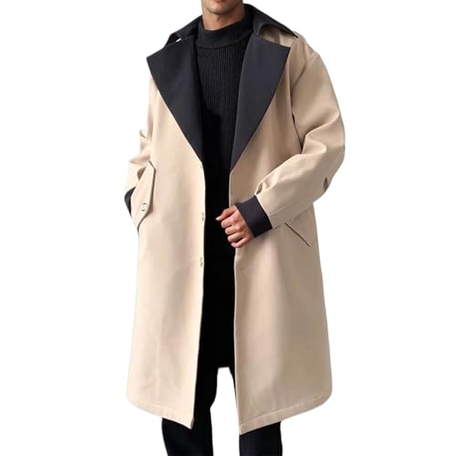 Mens Warm Jackets Peacoat, Autumn Winter Men's Trench Coat Long Lapel Double Breasted Outerwear Casual Jacket Windproof Raincoat for Style