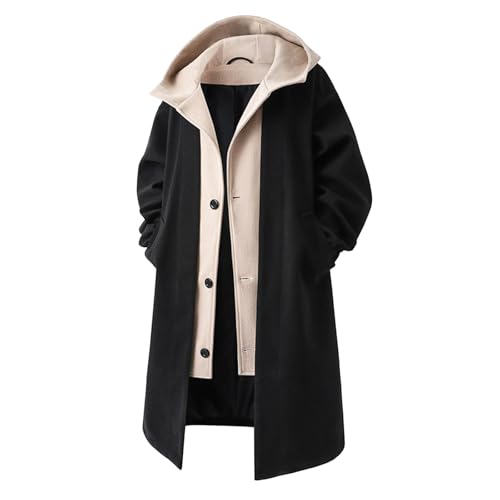 Mens Long Coat Peacoat, Two Tone Anorak Jacket Long Sleeve Hooded Coat Mens Autumn Casual Streetwear Outerwear Fashion
