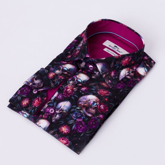 Claudio Lugli Mens Purple Floral Skull Shirt
