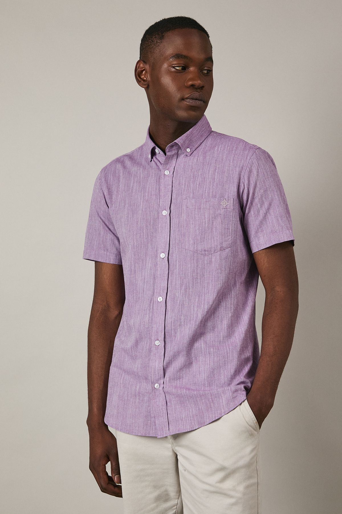 Maine Mens Purple Short Sleeve Shirt Cotton - Size Small