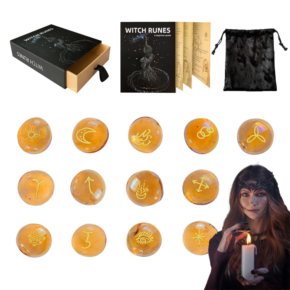 Runenset Wahrsagesteine Yellow With Bag And Guidebook For Rituals And Decoration For Men And Women