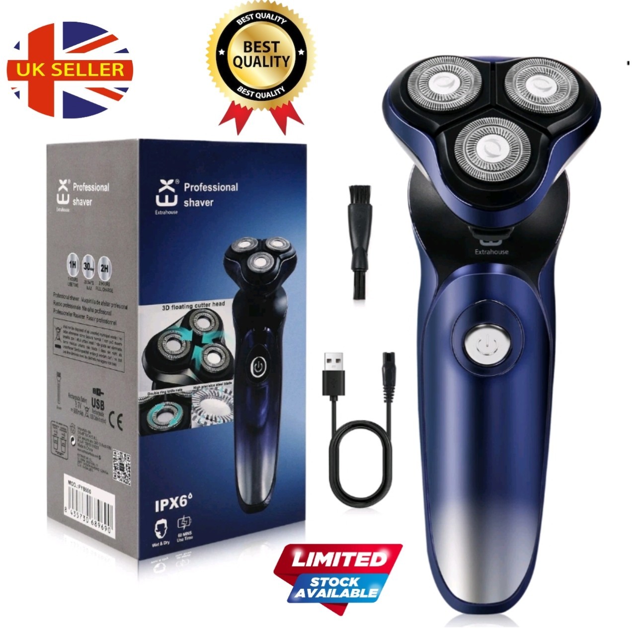 Mens Electric Shaver Razor Wet/Dry Rechargeable Rotary Cordless USB Charging UK