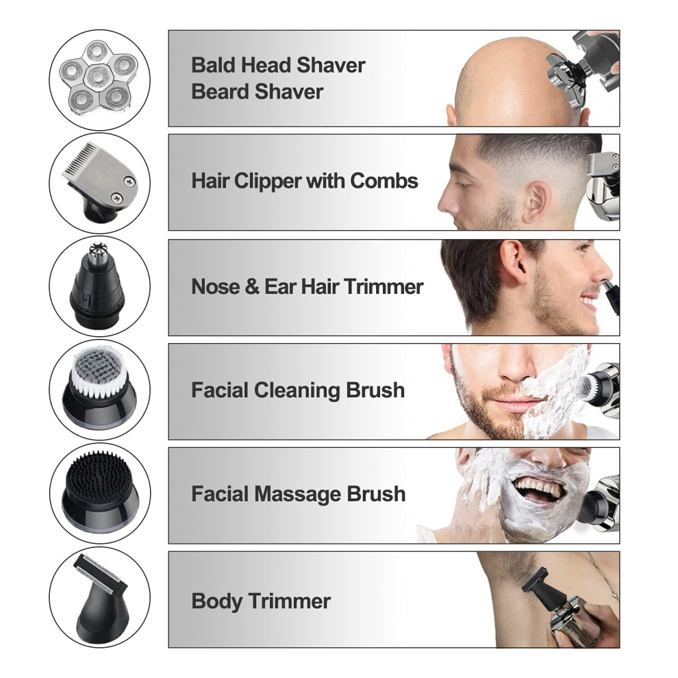 5-in-1 Electric Head Shaver For Bald Men, Rotary Design Head Shavers, Electric Men's Grooming Kit