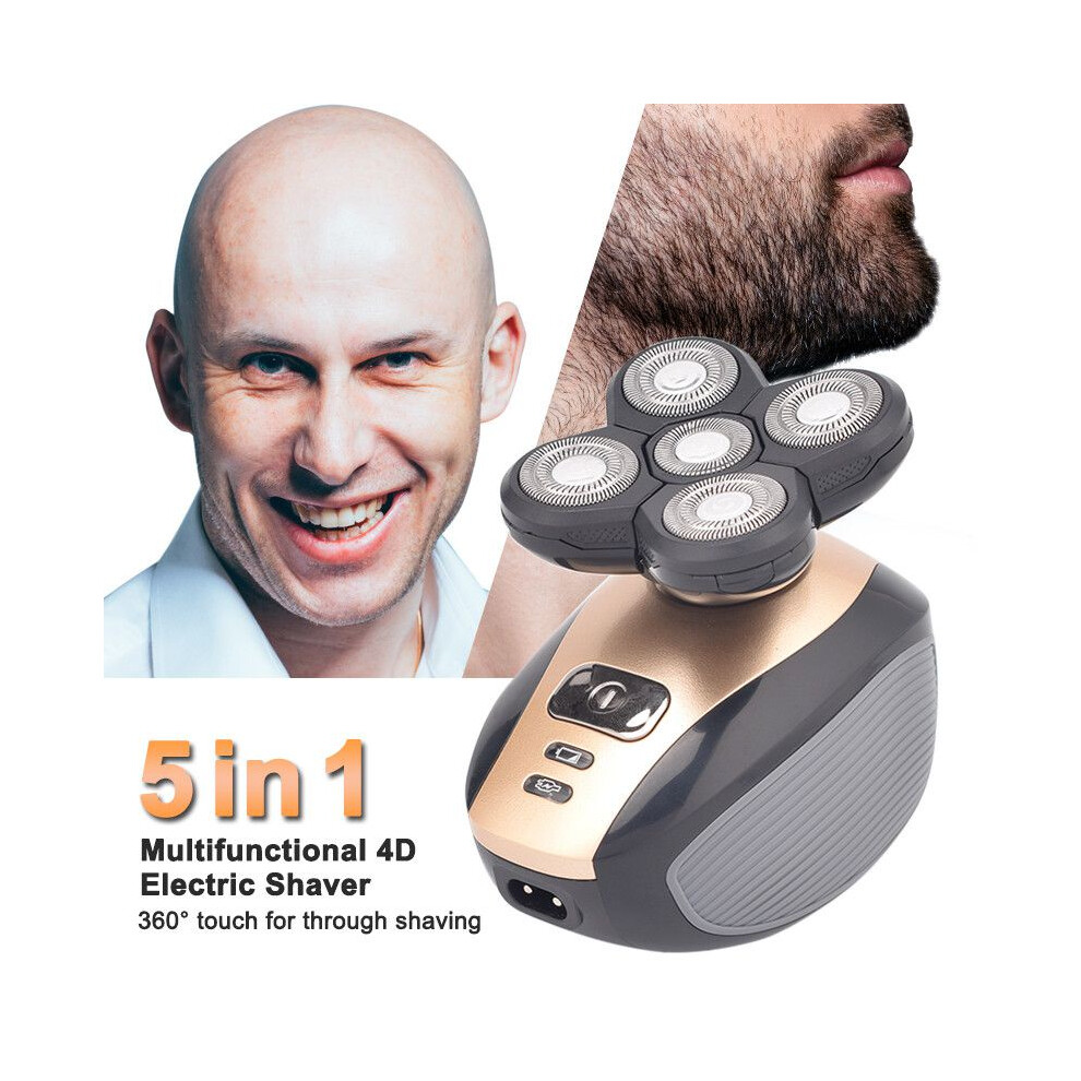 5 In 1 4D Rotary Men's Rechargeable Bald Head Electric Shaver 5 Floating Heads