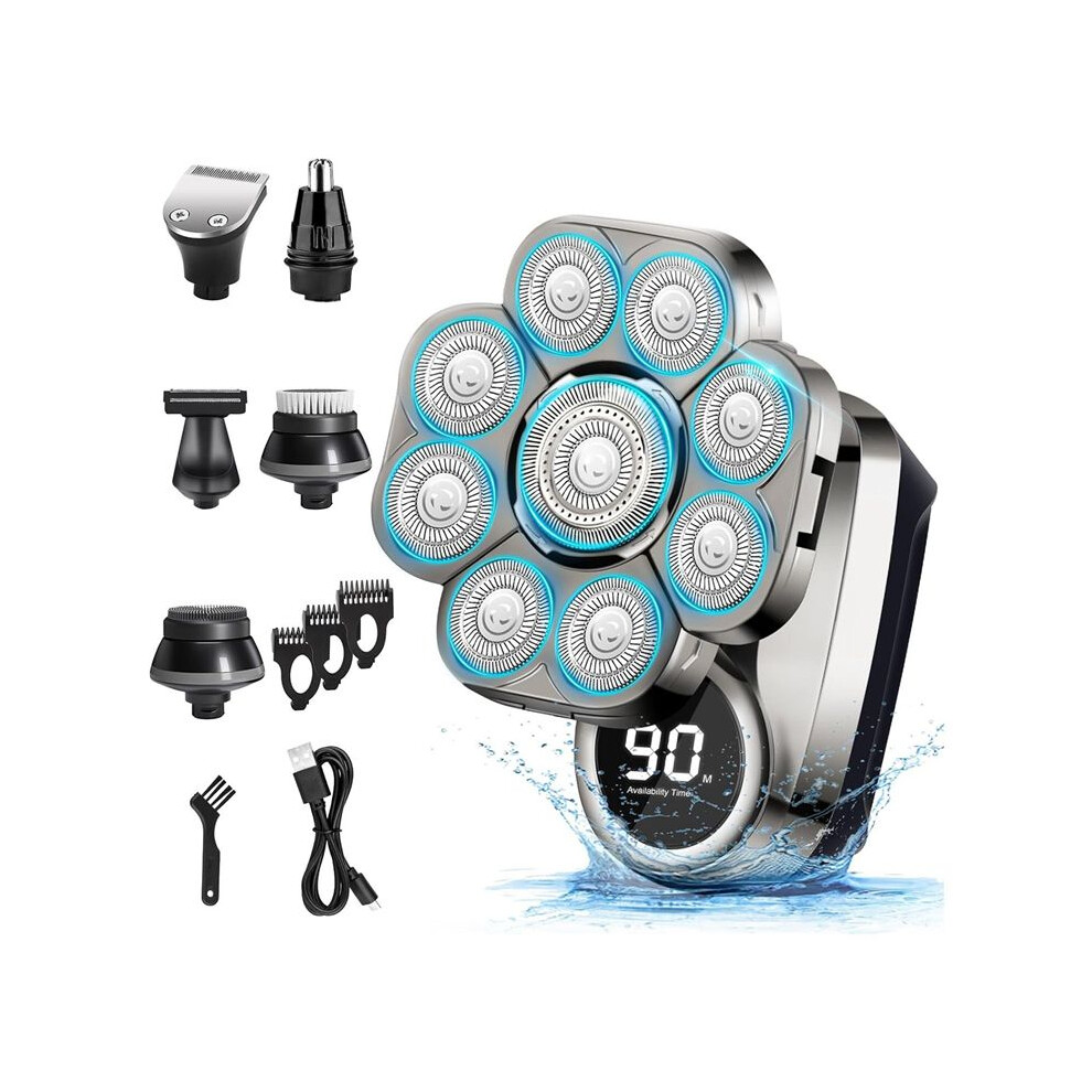 Upgraded men's bald shaver, 6 in 1 bald shaver Waterproof electric LED display rotary shaver