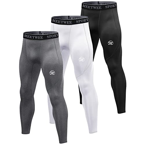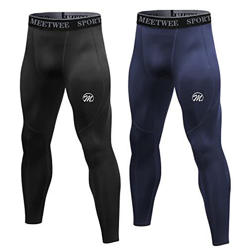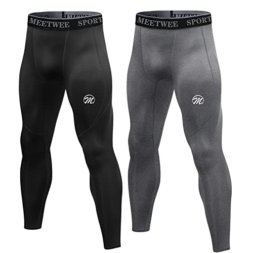 MEETWEE Mens Compression Leggings, Running Tights Cool Dry Base Layer Bottom Sports Pants for Workout Training Jogging