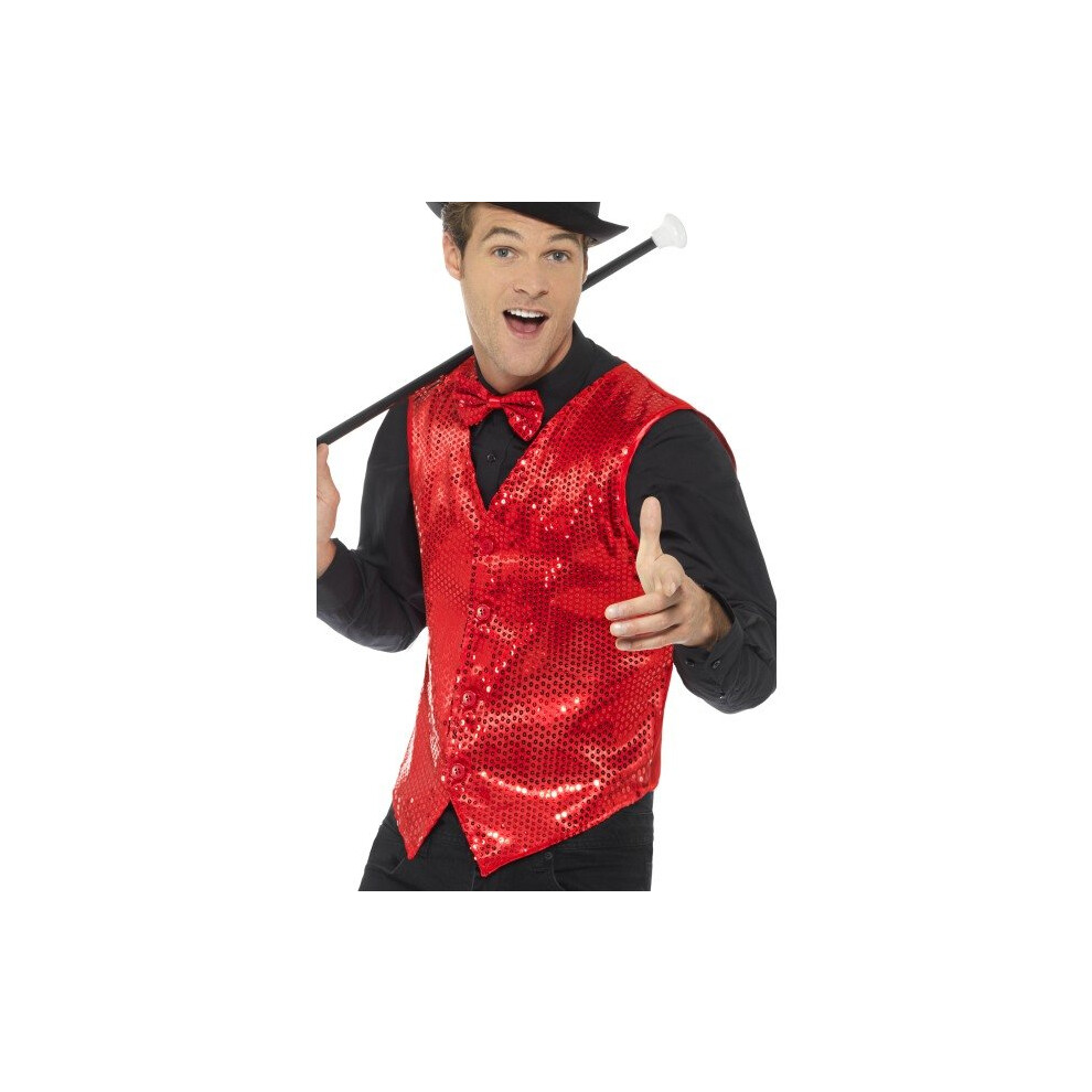 Smiffy's 46960s Sequin Waistcoat (small) - sequin waistcoat adults fancy dress cabaret costume accessory red disco jacket mens carnival new