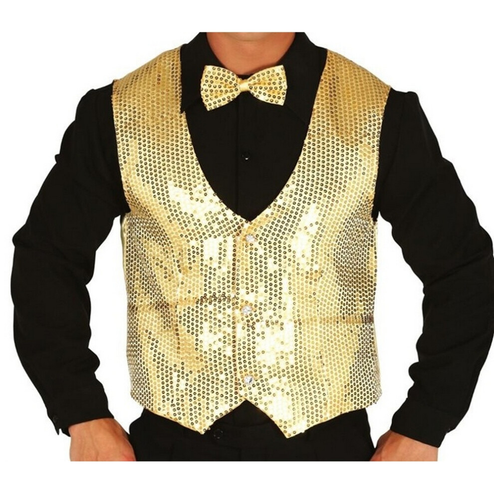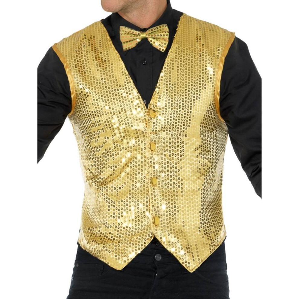 (L, Gold) Smiffys Mens Sequin Costume Waistcoat