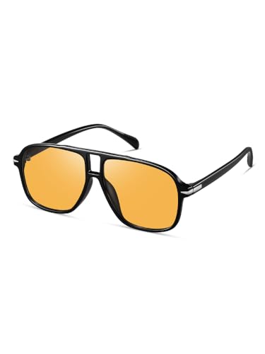 kimorn Pilot Retro Sunglasses for Women Men,Trendy Rectangle Womens Mens Shades Sun Glasses (Black/Yellow)