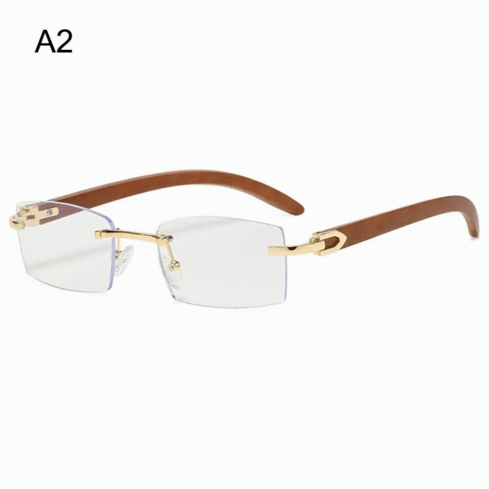 UV400 Tinted Lens Wooden Temples Punk Mens Sunglasses Shades Sun Glasses Rimless Rectangle Women Sunglasses