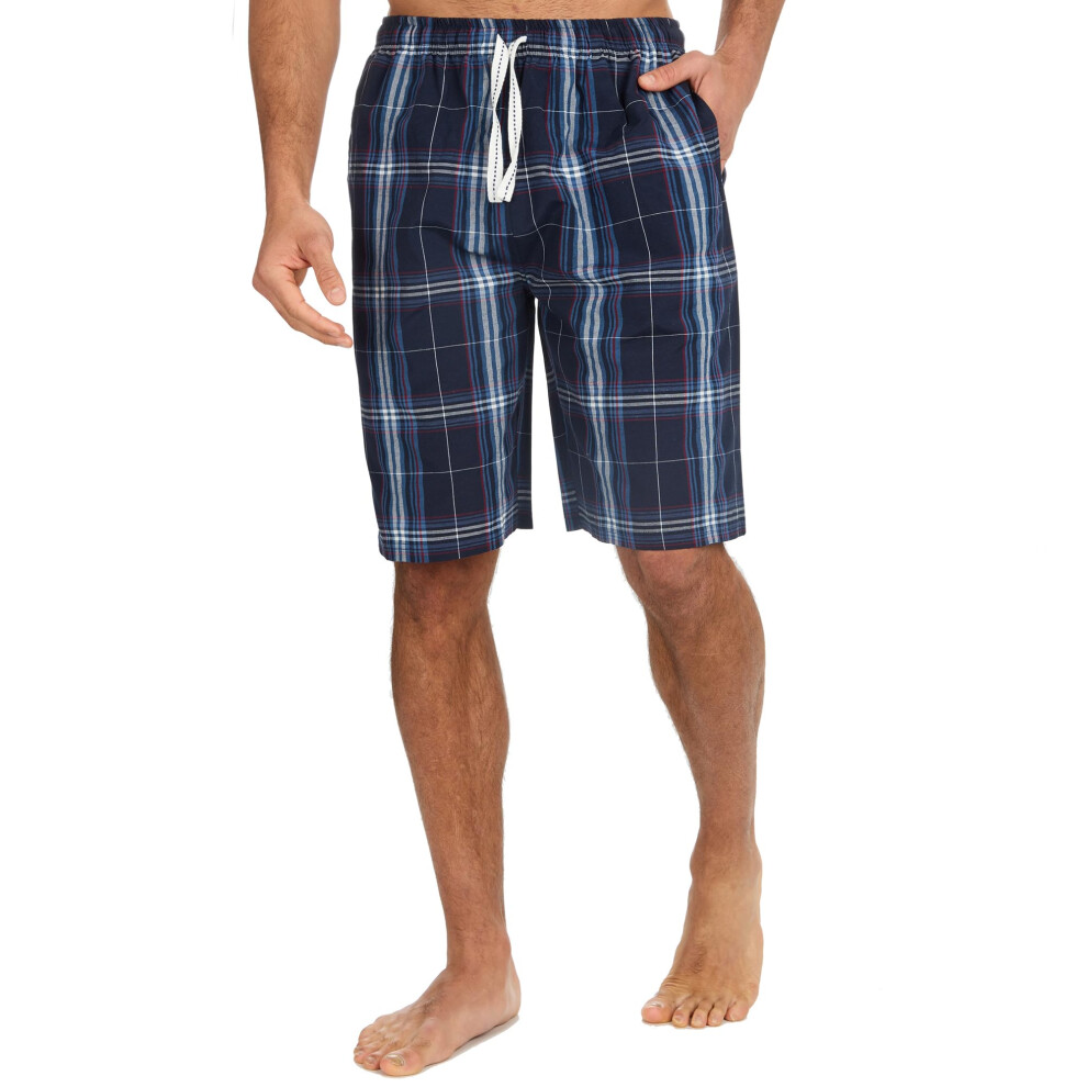 (Navy, Large) Mens Woven Pyjama Short Pants Pj'S Sleep Shorts Nightwear Lounge Bottoms Pockets Size S-Xxl