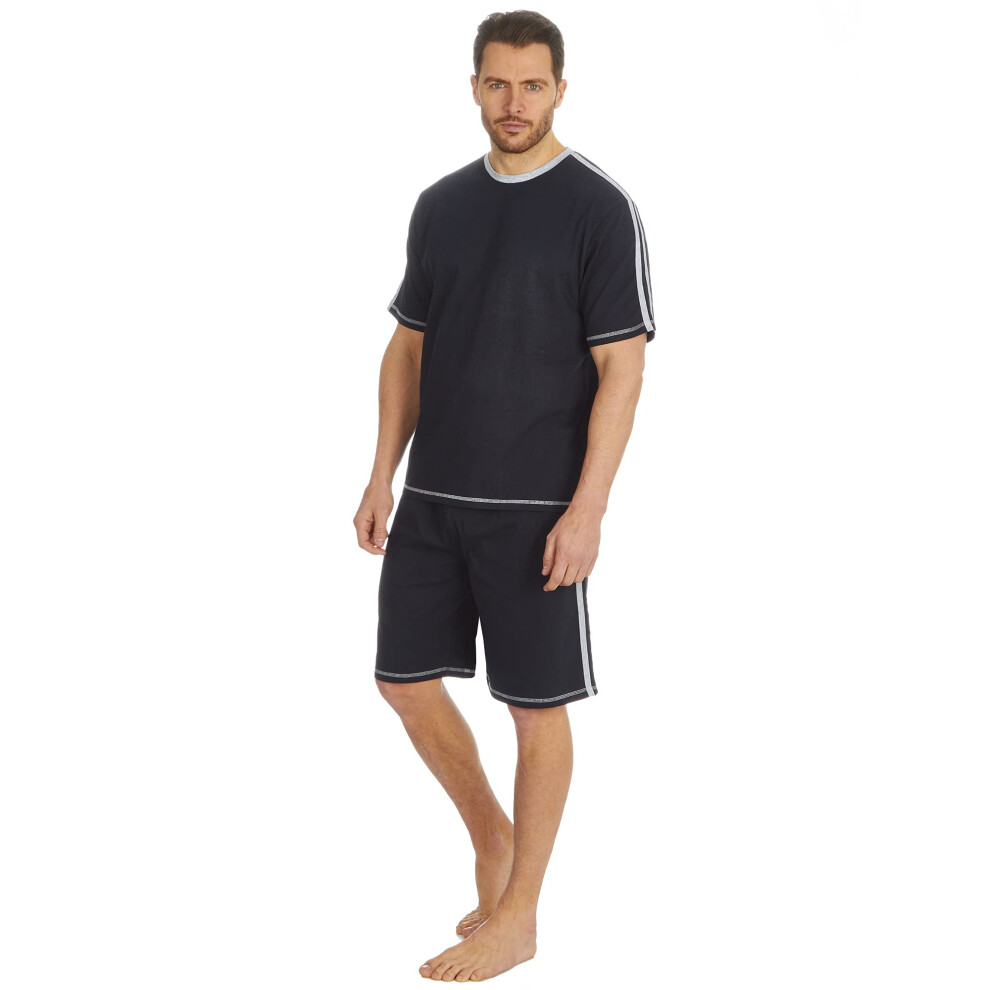 Style It Up Mens Short Sleeve Pyjama Set Cotton Top Brushed Fleece Bottoms PJ Loungewear/Nightwear (BLACK-BLACK, M)