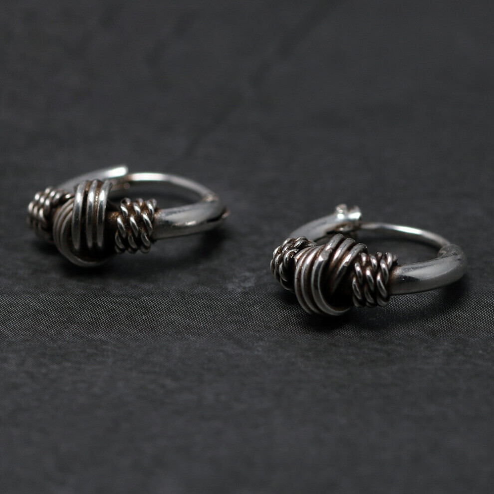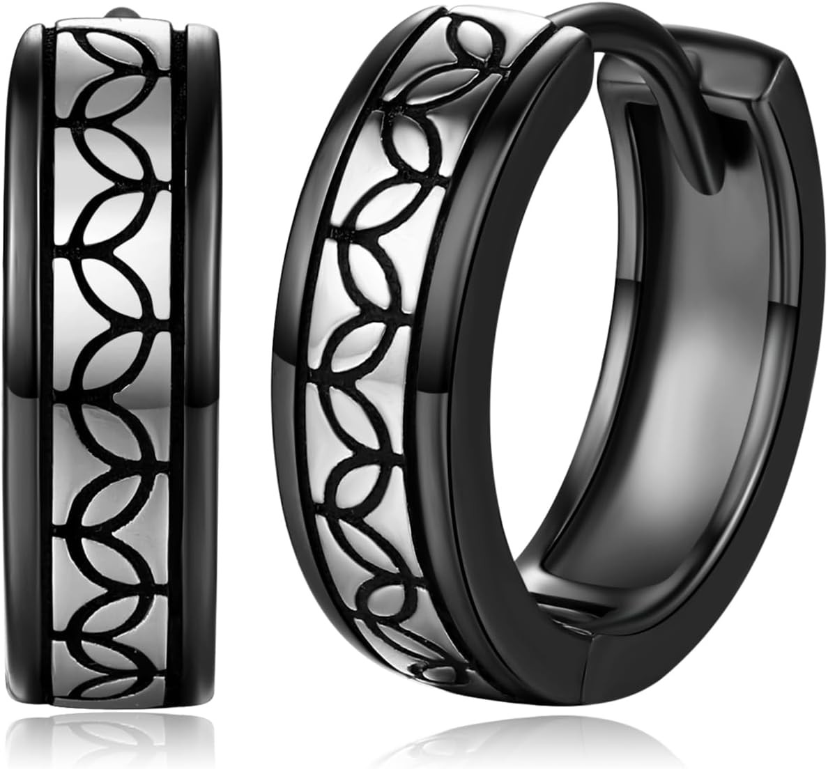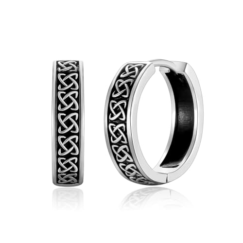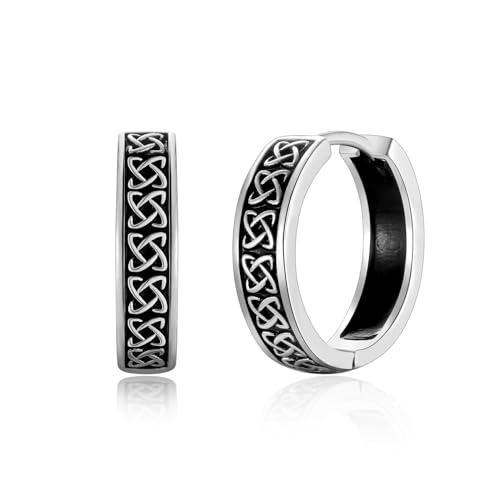 Mens Hoop Earrings 925 Sterling Silver Celtic Knot Black Earrings Viking Jewell