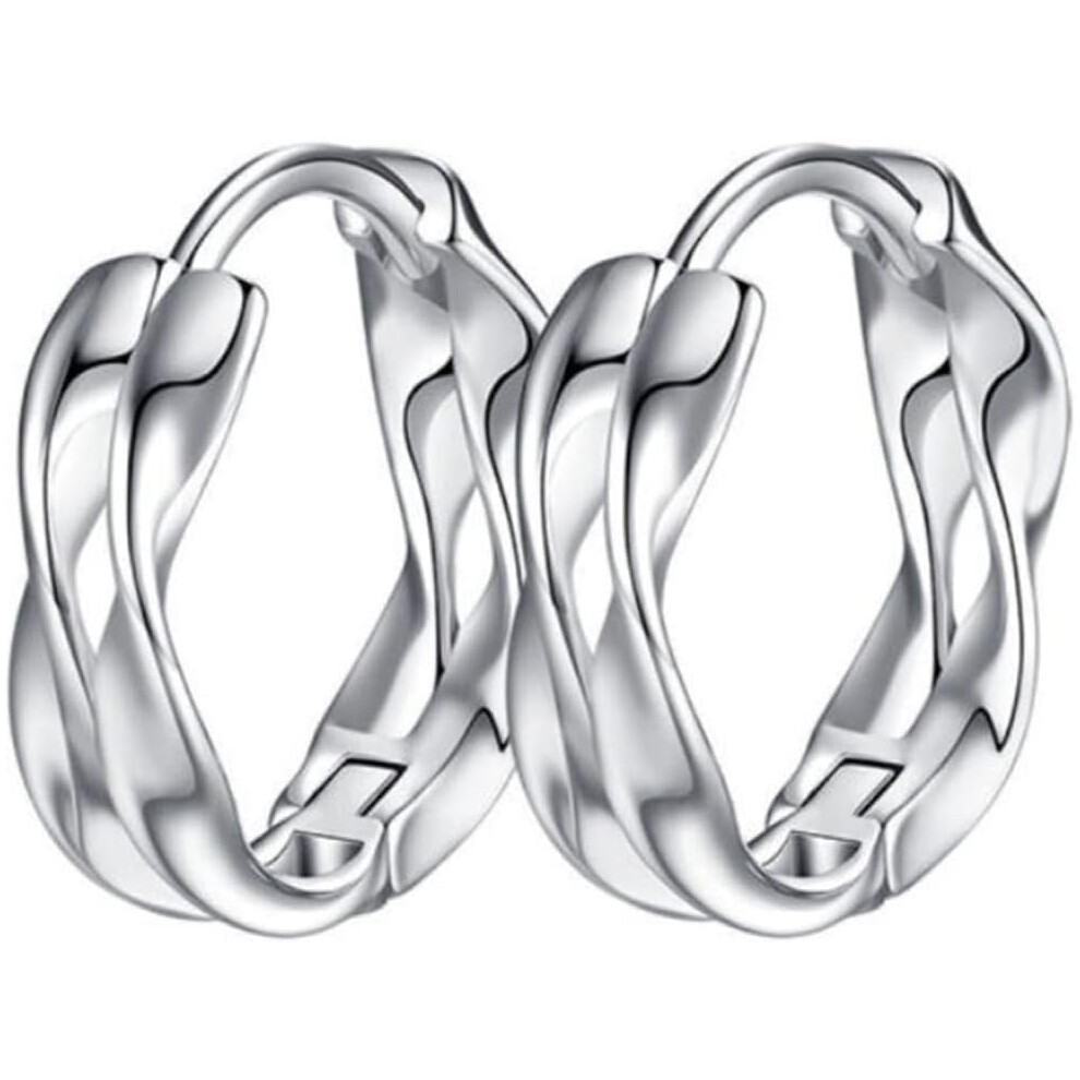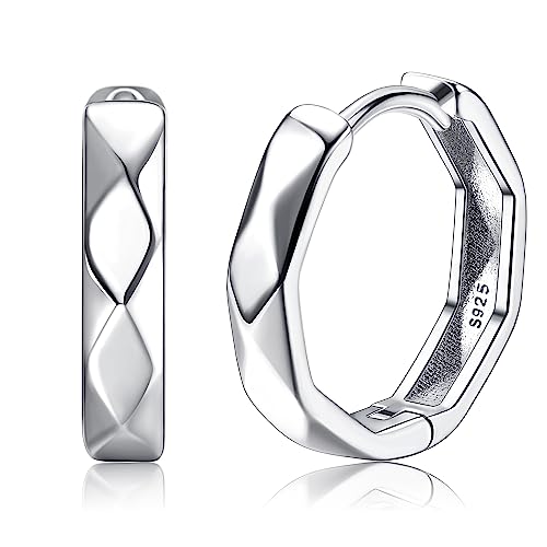 KRFY 925 Silver Hoop Earrings for Men women Small Lightweight Sleep Huggie Hoop Earring High Polished Rhombus-shaped Cutting Texture Silver Mens Hoop Earrings Inner Diameter 10MM
