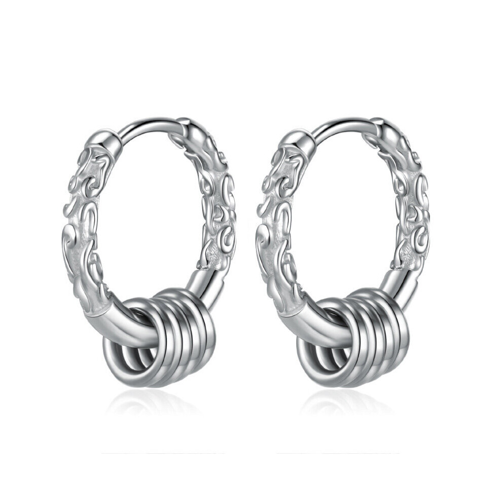 Punk Men's Hip Hop Hoop Earrings Round Earring Pendant For Men Earrings Jewelry 925 Silver For