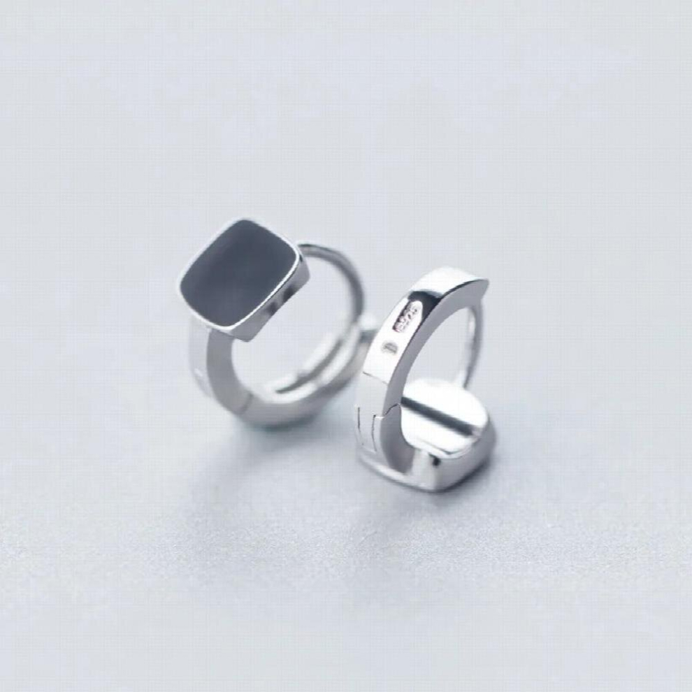 Mens womens Real. 925 Sterling Silver enamel Square hoop huggie Earrings jewelry 7mm*12mm C-E2409