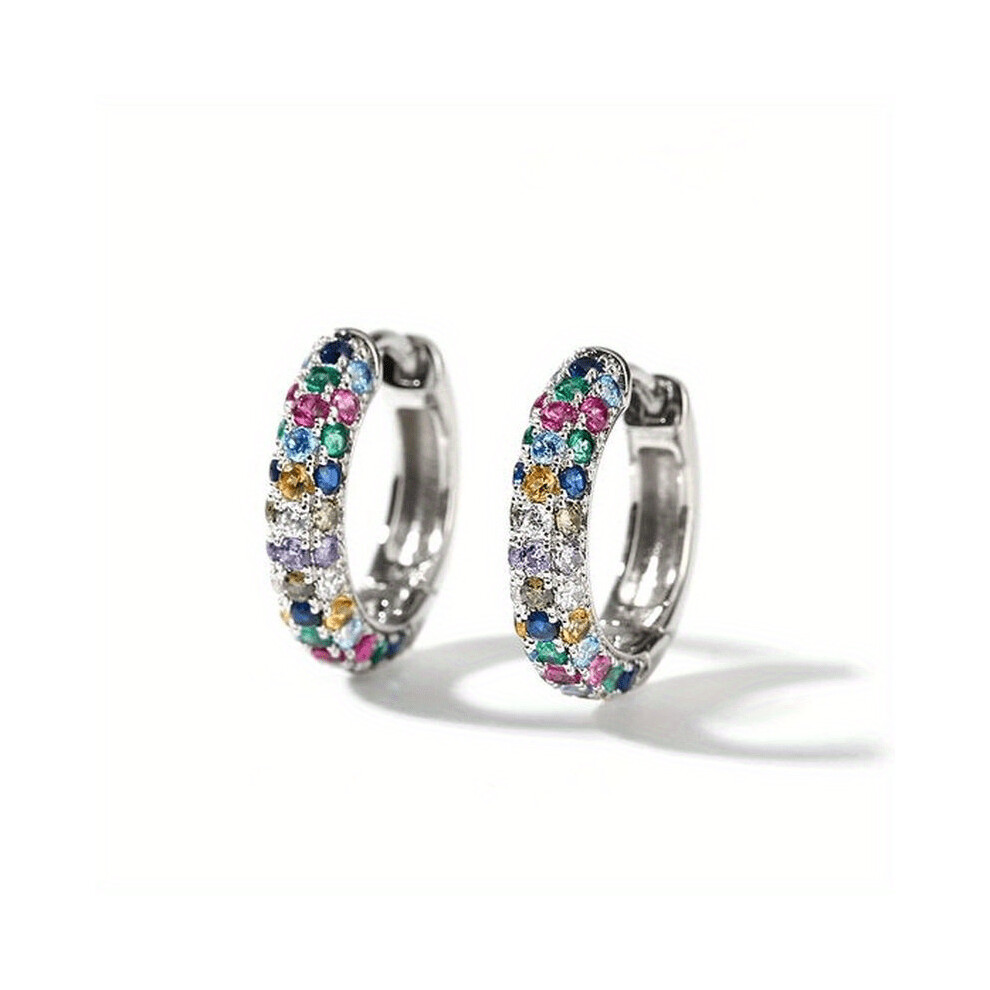 2pcs pair Mens Silver Plate Round Small Earrings Set Half Hoop Colorful Zircon Jewelry Earrings