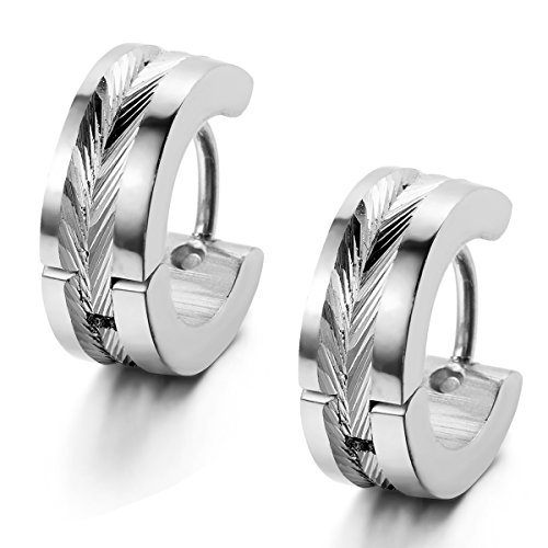 Flongo Men's Womens Biker Stainless Steel 4mm Wide Silver Vintage Huggie Hinged Stud Hoop Earrings