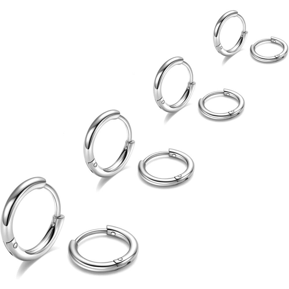 ORAZIO 4 Pairs Silver Hoops Earrings for Women Mens Surgical Steel Earrings Daith Cartilage Silver Earrings Helix Tragus Conch Piercing Jewellery Small Silver Hoop Sleeper Hypoallergenic Earrings