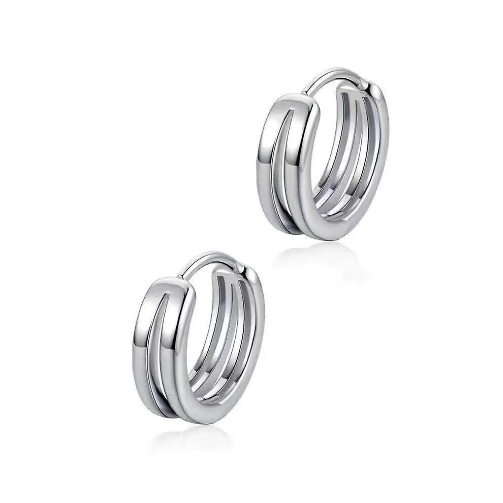 (Silver) Stainless Steel Hoop Earrings For Men Punk Multilayer Round Double Ring Hip Hop Party Earring Perforated Stud Mens Jewellery