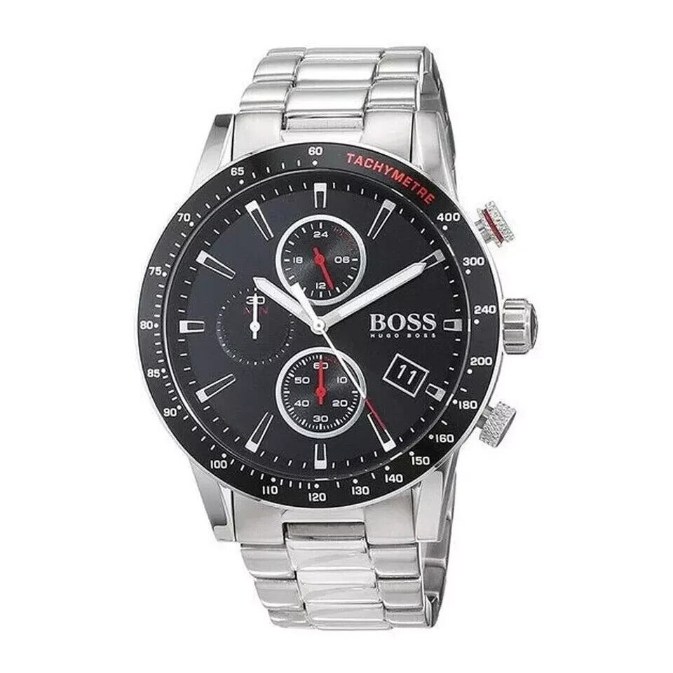 Hugo Boss Men's Watch Silver Black Dial Chronograph Admiral 1513904 For Him