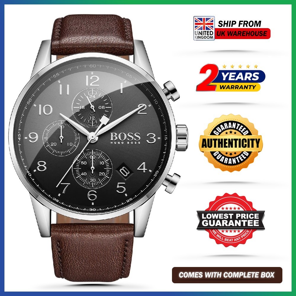 HUGO BOSS Navigator HB1513494 Leather Brown Strap Black Dial Chrono Mens Watch