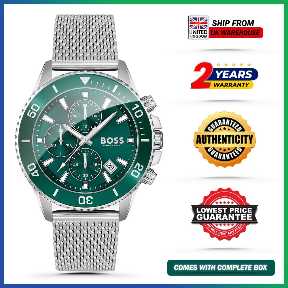 New Genuine HUGO BOSS HB1513905 Admiral Green Dial Stainless Chrono Mens Watch