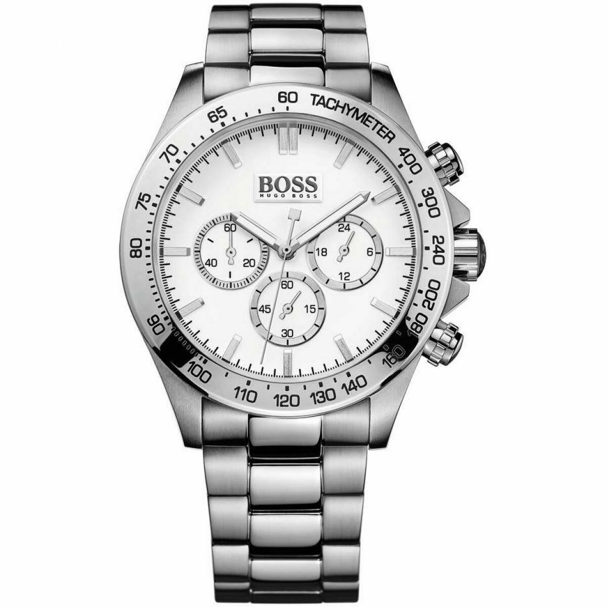 HUGO BOSS HB1512962 Ikon Mens' Silver Dial Stainless Chrono Watch + Gift Bag