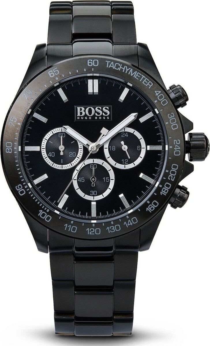 New HUGO BOSS HB1513754 Chronograph Stainless Steel Black Strap Dial Mens Watch
