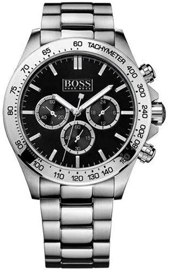 Hugo Boss HB1512961 Ikon Mens' Black Dial Stainless Chrono Watch + Gift Bag